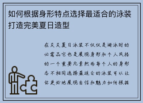 如何根据身形特点选择最适合的泳装打造完美夏日造型